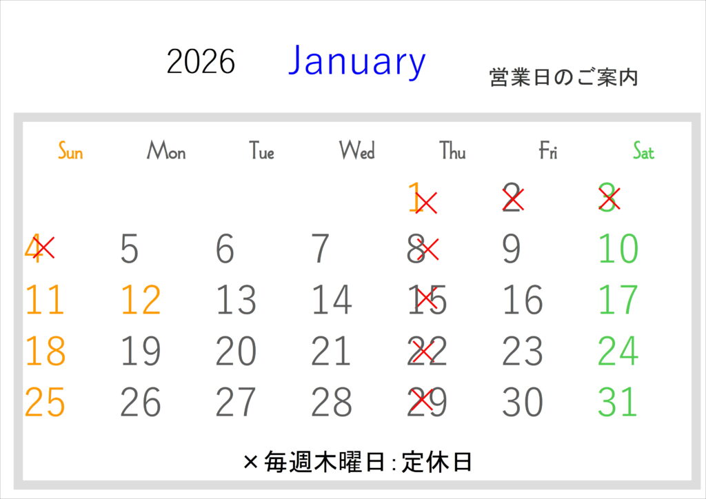 1月の定休日のお知らせです。 | パン工房 西山荘 別邸