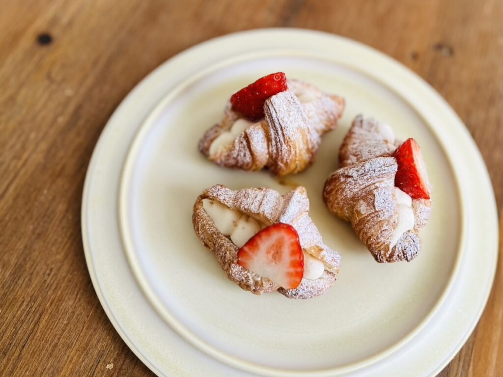 サクサクに焼き上げたプチクロワッサンにバニラクリームを絞り、