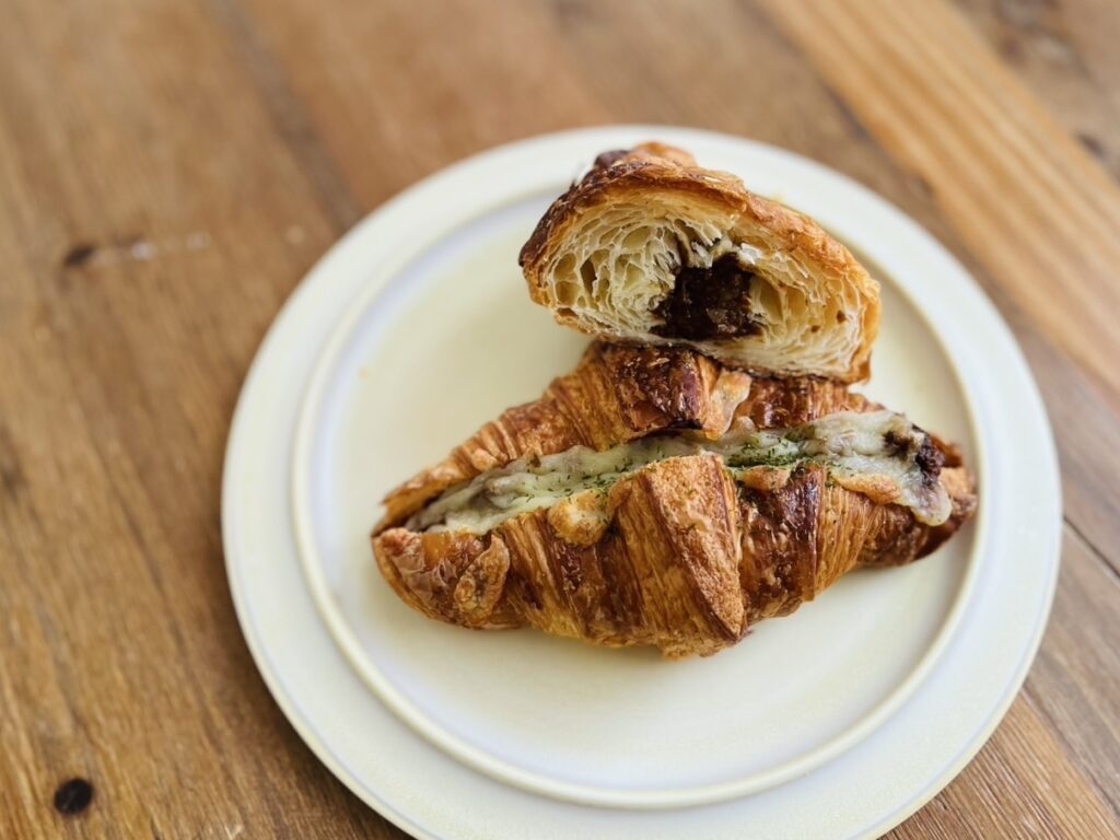 当店人気のサクサクのクロワッサンに、濃厚なビーフシチューを絞り