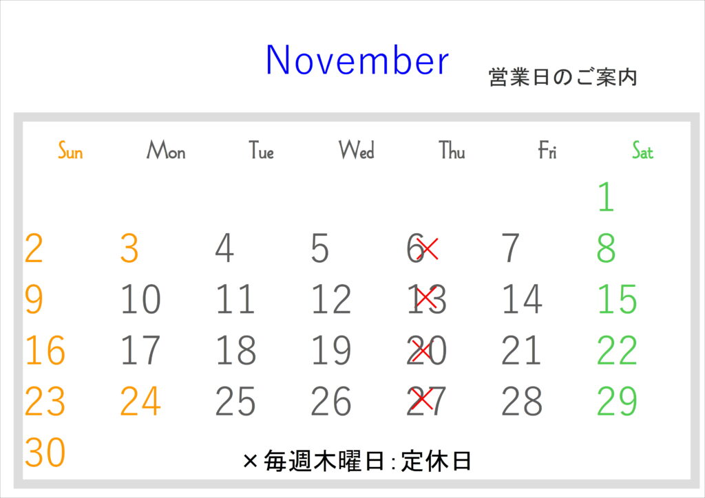 11月の定休日のお知らせです。 | パン工房 西山荘 別邸