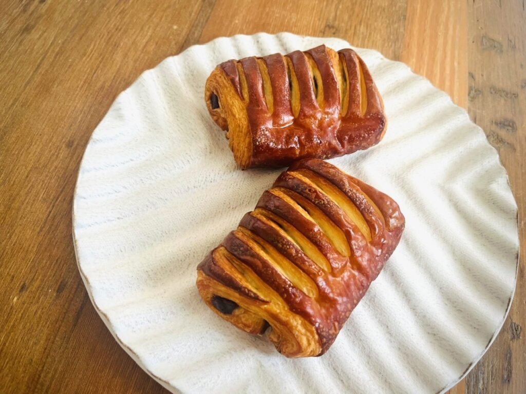 2種類のチョコを包んで焼き上げた進化系のパンオショコラです。