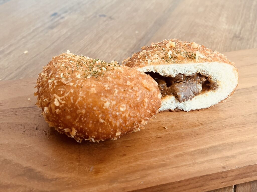 仕上げにデュカとパセリをトッピングした独特の風味がクセになるカレーパンです