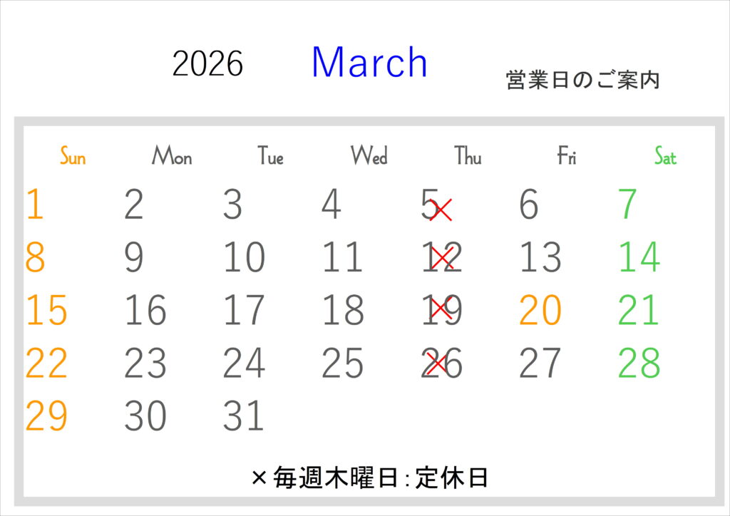 3月の定休日のお知らせです。