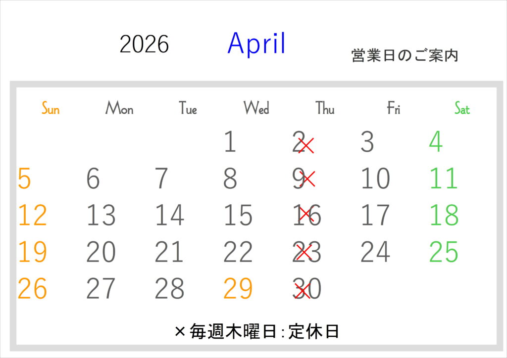 4月の定休日のお知らせです。