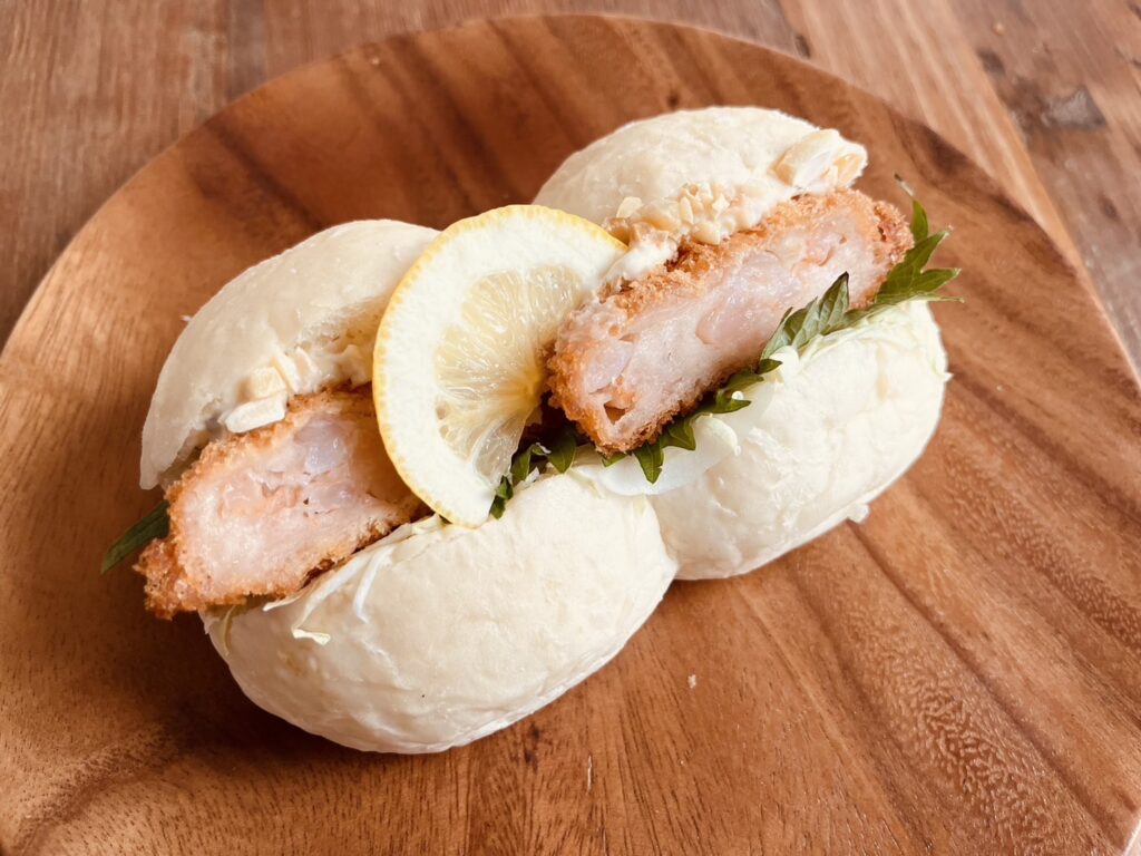 ぷりぷりのエビカツをとんかつソースとタルタルソースを組み合わせてサンドしました