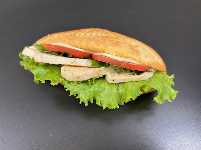 レモンペッパー風味に仕上げたチキン・チーズ・大葉・トマト・リーフをサンドしました。