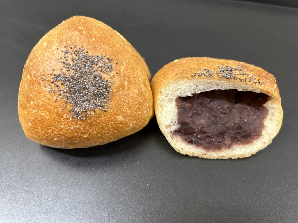 フランス生地につぶあんを包み、表面には黒ケシの実をトッピングしました。